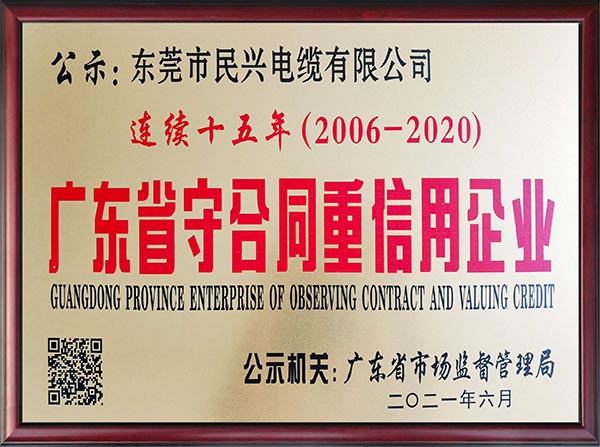 • 连续15年荣膺广东省守合同重信用企业